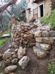 Nach zwei Wochen steht die Mauer und das Loch ist gefüllt. Es entsteht auch noch ein Pizzabäckersitzplatz gegenüber am Hang. |