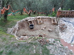 Das Material in der neuen Terrasse hat sich inzwischen gesenkt, es wächst eifrig Gras und Kraut. Diesen Urlaub sollen die Fundamente für die Stützen des Tisches gegossen werden auf dem der Pizzaofen stehen soll und außerdem die Stützen gebaut werden.