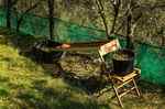 Wenn also genug dran hängt, dann muss das Gras gut geschnitten sein. Hat man spät im Jahr kurz vor dem trockenen Sommer geschnitten, ist das Gras meist noch kurz genug. Hat man früh geschnitten, dann muss man (am Besten im Oktober) nochmal nachschneiden. Wenn man das macht kann man im Oktober schon mal die Netze ausbreiten. In ca. 35 % des gepflegten Olivenhains sind Netze aufgehängt, die man ausbreiten und zusammennageln kann. Zusammennageln ist eine Stecktechnik mit schwarzen Plastiknägeln, mit der die Netze verbunden werden.