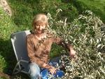 Die Oliven sind so ab Anfang November erntebereit. Anfang November gibt es allerdings noch viele grüne. Diese enthalten weniger Öl, sind aber auch weniger faul. Die Olivenfliege legt ein Ei in die kleinen grünen Oliven und die Made wächst mit der Frucht. Wenn die Olive noch grün ist dann ist die Made auch noch klein und wenig Fruchtfleisch ist zerstört, d.h. auch weniger Oberfläche für Faulungsprozesse.